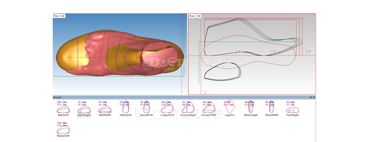 4. Fit the 3D data of the shoe last entity with the foot shape 3D data in the Shoemaster shoe-making software to get the shoe last of the customized shoe and start to customize the shoe